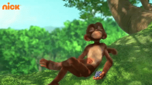 Munki from Munki And Trunk relaxing on a tree branch and enjoying a snack of grapes.