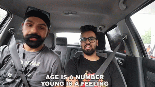 Jasminder Singh and friend in a car, sharing the philosophy: Age is a number, young is a feeling.