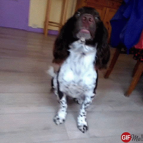 Aggy Patate, a cute spaniel dog, performs tricks, standing on hind legs and giving a paw.