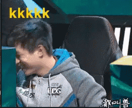 An esports player from EDG laughs, then puts on his headset with a determined expression, saying "Now I will play seriously!".