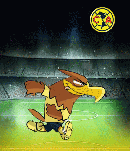Club América's eagle mascot, Águilas, celebrates a goal on a soccer field.