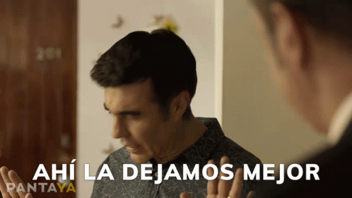 Adrian Uribe reacts with the phrase 'Ahí la dejamos mejor' to another man, expressing resignation.