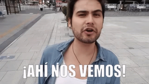 Fabio Torres winks and says '¡Ahí nos vemos!' (See you there!) on a city street, possibly an invitation.