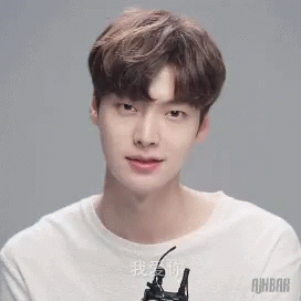 Ahn Jaehyun, the popular actor, smiles charmingly while making a finger heart gesture in a white shirt.