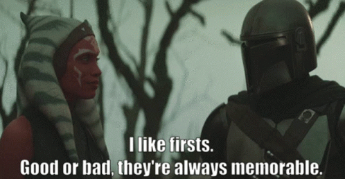 Ahsoka Tano and Din Djarin from The Mandalorian discuss memorable 'firsts' in this iconic scene.