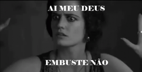 Woman reacting with shock and exasperation, saying 'Oh My God, Not a Scam' in Portuguese.