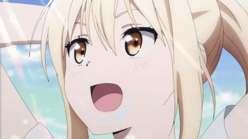 Ai Miyashita from Love Live! Nijigasaki School Idol Project shows an excited expression with her mouth open.