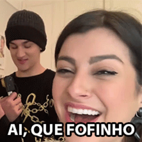 Nah Cardoso smiles and laughs with Nah Rua behind her, reacting to something adorable and saying 'Oh how cute!'