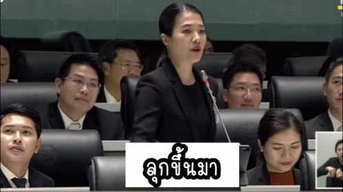 สสอิ่ม Aim (ธีรรัตน์ สำเร็จวาณิชย์) speaks passionately at a podium in a formal setting.