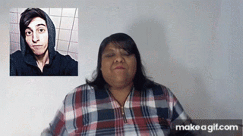 Aimep3 La Gory, a woman in a plaid shirt, moves erratically, appearing to convulse or dance energetically.