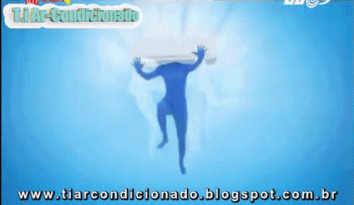 An advertisement for T.I Ar-Condicionado shows blue figures enjoying the cool air from an air conditioner.
