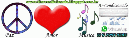 A vibrant peace sign with a red heart and musical notes, symbolizing love and harmony.
