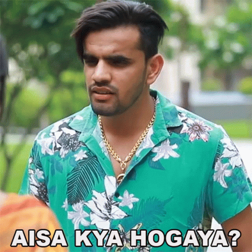 Prince Verma asks 'Aisa Kya Hogaya?' (What happened?) while wearing a green floral shirt and gold chain.