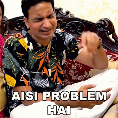 Puneet crying and looking distressed on a couch, lamenting 'Such a problem it is'.