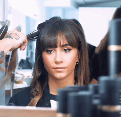 Aitana Ocaña getting her hair styled with a curling iron in a salon setting.