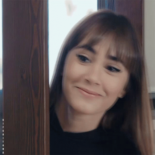 Aitana Ocaña peeks from behind a doorframe, smiling warmly and then breaking into a bright grin.