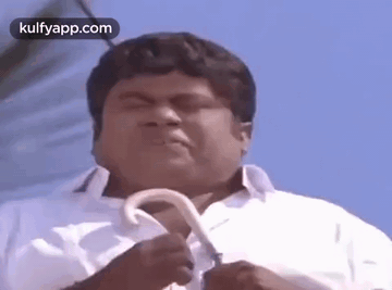Senthil makes a hilarious 'Aiyo' face while holding an umbrella, a classic comedy moment from Cheran Pandiyan.
