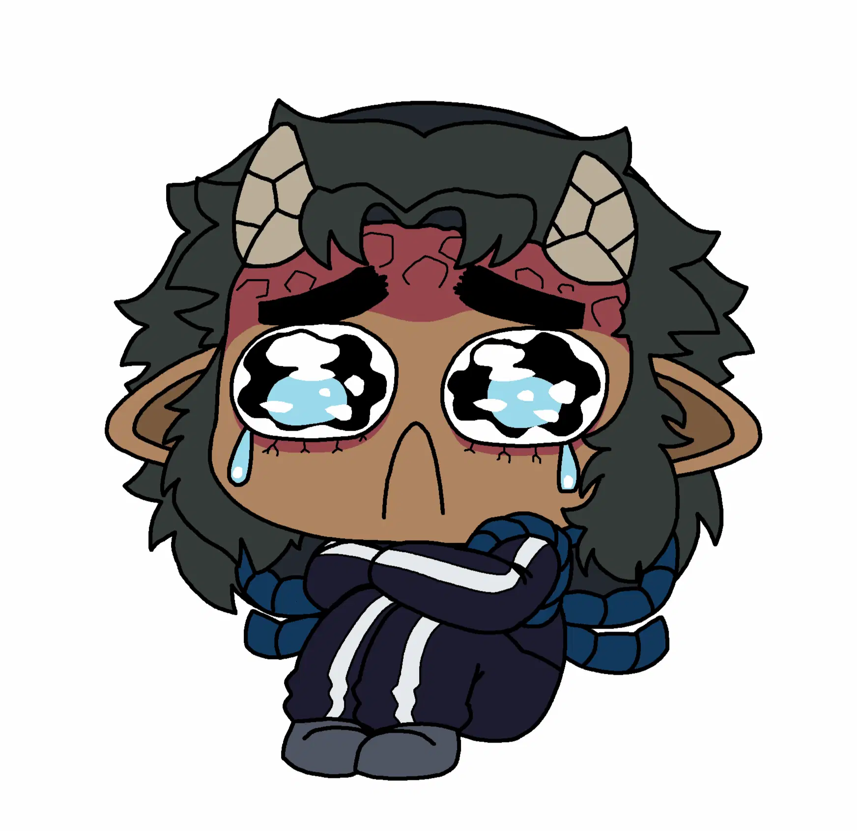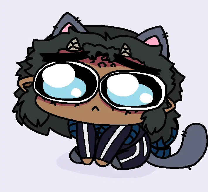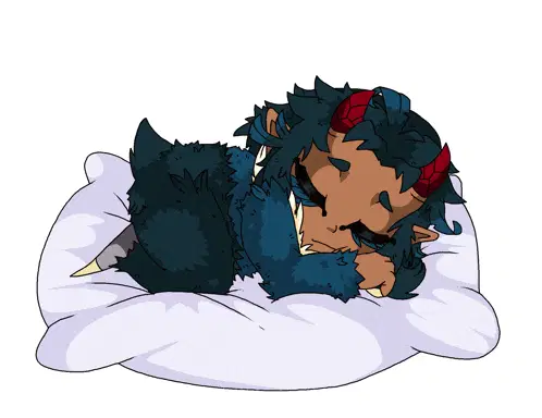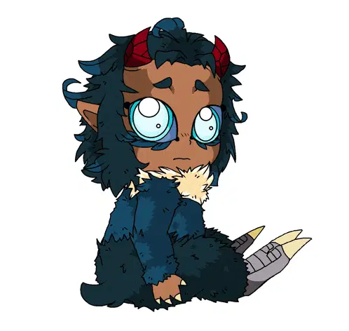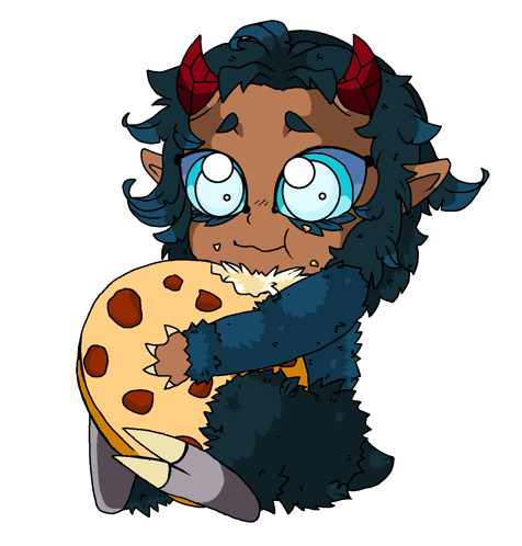 a cartoon character with horns is holding a cookie in his hands