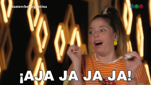 Juariu makes an exaggerated funny face and laughs loudly, with the caption '¡AJA JA JA JA!' visible, during Masterchef Argentina.