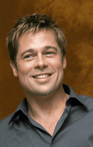 A collection of photos featuring actor Brad Pitt, showcasing his various looks and smiles.