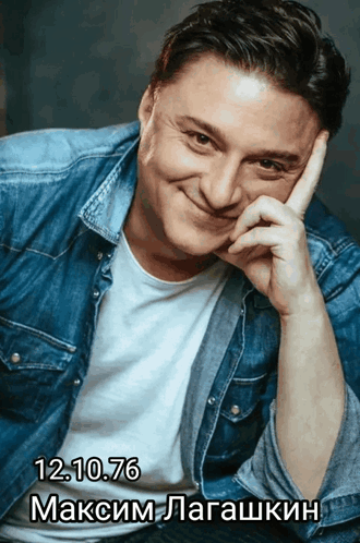 Actor Maxim Lagashkin, known for 'Dyldy 3', poses in a denim shirt, with his birthdate visible.