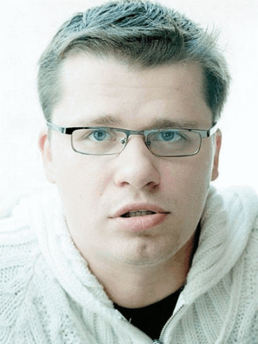 Russian actor, TV presenter, and comedian Garik Kharlamov, wearing glasses and a white sweater.