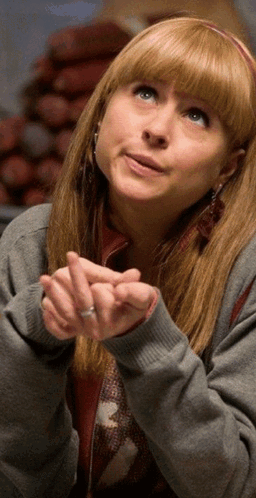 Miroslava Karpovich, known for 'Daddy's Daughters,' looks up thoughtfully, wearing a grey cardigan.