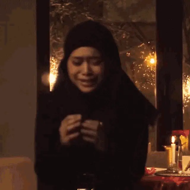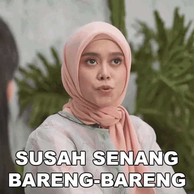 Lesti, with a joyful expression, holding a red book, with the text 'Aku Terlena' displayed.