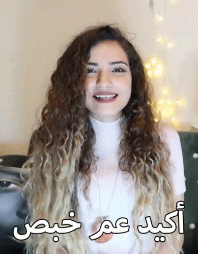 Woman with curly hair smiles as Arabic text 'I'm definitely messing up' appears on screen.