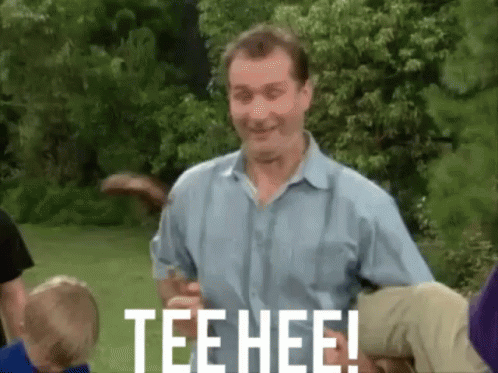 Al Bundy from Married With Children delivers a classic 'Tee Hee!' moment with a mischievous grin.