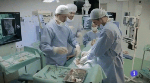 Surgeons in an operating room with the Spanish phrase '¡Al Lío!' (Let's get to it!) on screen.
