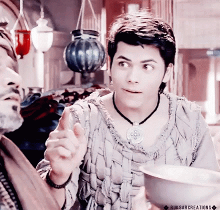 Siddharth Nigam as Aladdin, smiling and interacting with another character in a vibrant market setting.