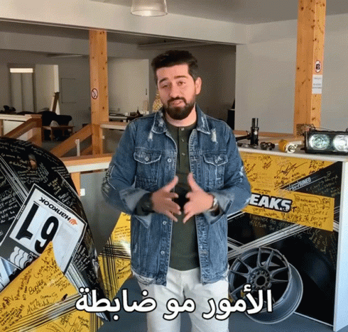 Suhaib explains that things are not going well, gesturing in a garage setting with car parts around him.