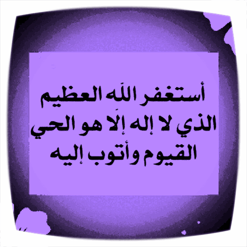 A purple sign displays the Arabic phrase 'I seek forgiveness from Allah, the Almighty, whom there is no god but He, the Ever-Living, the Sustainer, and I repent to Him.'