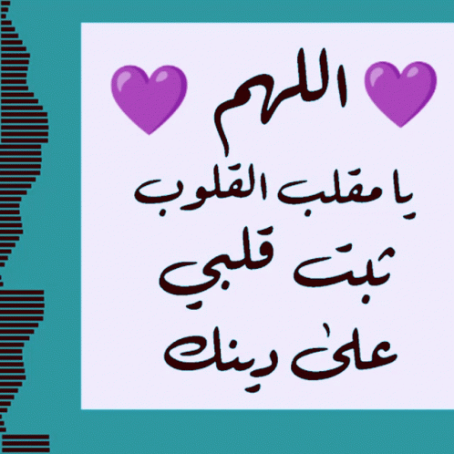 A heartfelt Islamic prayer: 'Oh Allah, O Turner of hearts, keep my heart firm on Your religion,' with purple heart emojis.