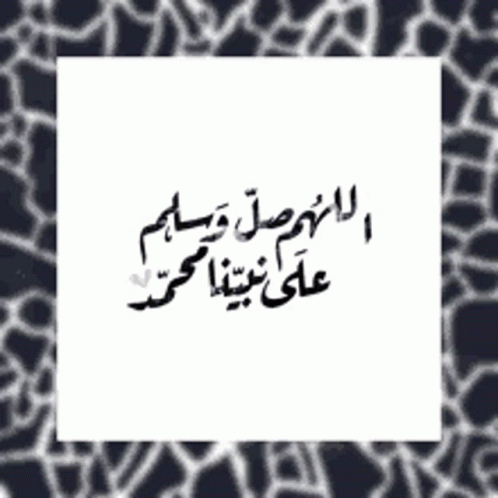 Arabic calligraphy of "O Allah, send prayers and peace upon our Prophet Muhammad" on a white square.