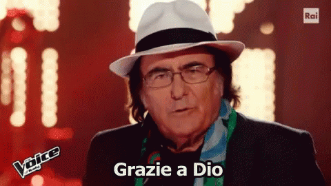 Italian singer Albano Carrisi exclaims 'Grazie a Dio' (Thank God) during an appearance on The Voice.