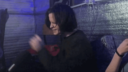 Albert Kabuu in a dark room with blue light, moving dynamically. Captures his intense action.