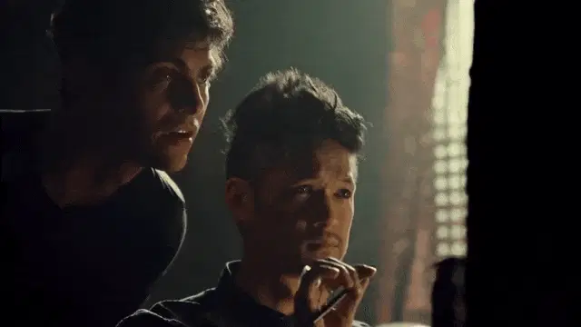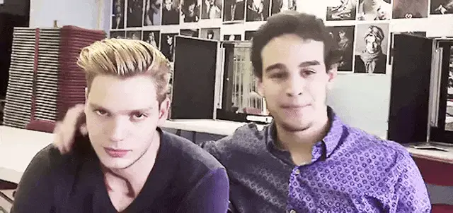 Alec from Shadowhunters gently holds a small, fluffy brown puppy, showing a tender moment with the adorable dog.