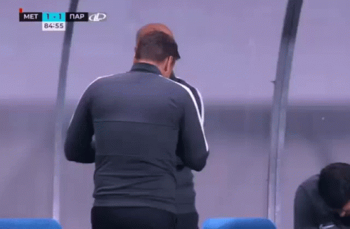FK Partizan coach Aleksandar Stanojevic shows intense emotion on the bench during a tense 1-1 soccer match.