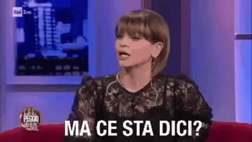 Alessandra Amoroso emphatically asks 'Ma Ce Sta Dici?' while sitting on a couch in a black lace dress.