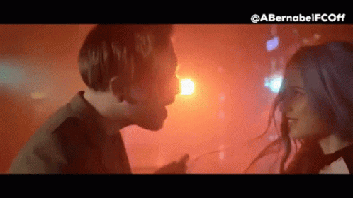 Alessio Bernabei's music video for 'Noi Siamo Infinito' features a man and woman kissing passionately under red lights.