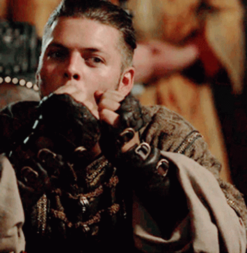 Alex Hogh Anderson as Ivar The Boneless, intensely gesturing and speaking in a scene from Vikings.