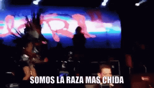 Alex Lora performs live with his band El Tri, with the text 'Somos la raza mas chida' on screen.