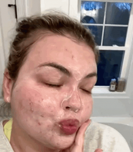 Alexandra Rodriguez applies a face mask, blowing a kiss while showcasing her skincare routine.