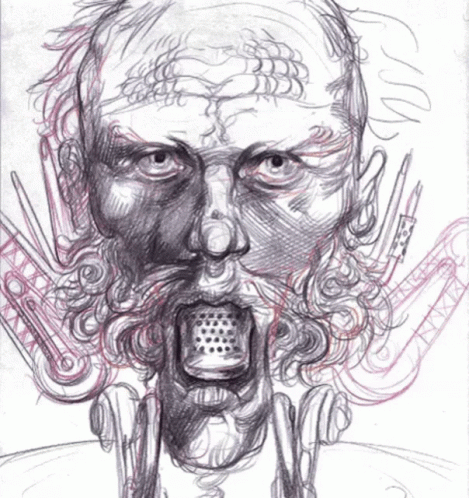 A detailed sketch of a person's face, possibly Alexboya, with expressive lines and a light brown smudge.