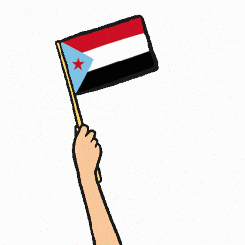 A cartoon hand waves the flag of South Yemen, representing the Southern Movement.