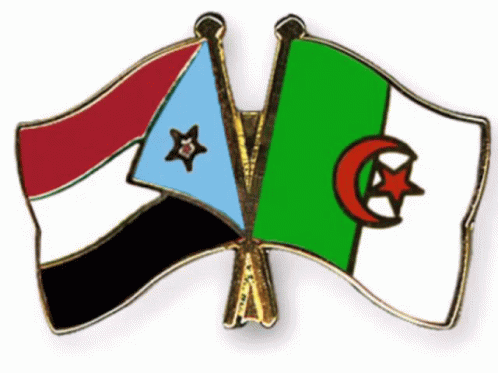 A decorative pin featuring the national flags of Yemen and Algeria crossed, symbolizing unity or diplomatic ties.