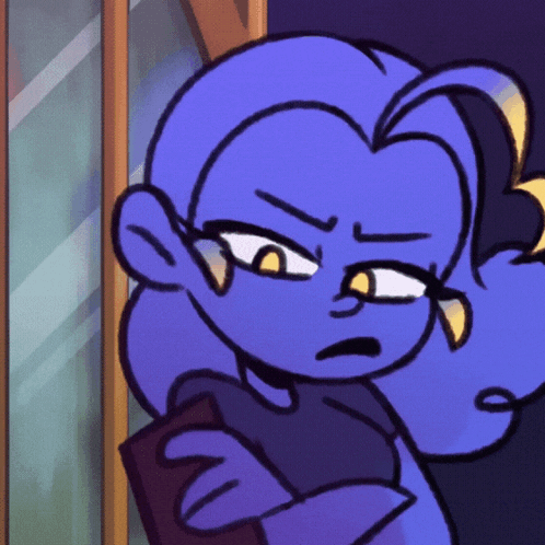 Algorithomus Zulmi, a blue-skinned character, reacts with a happy and confident expression.