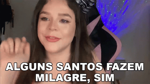 Thiessita shares her thoughts, stating 'Alguns Santos Fazem Milagre, Sim' in a direct address to the camera.